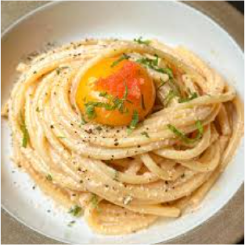 Smoked back bacon, parmesan cheese, eggs, mentaiko, furikake, nori, linguine