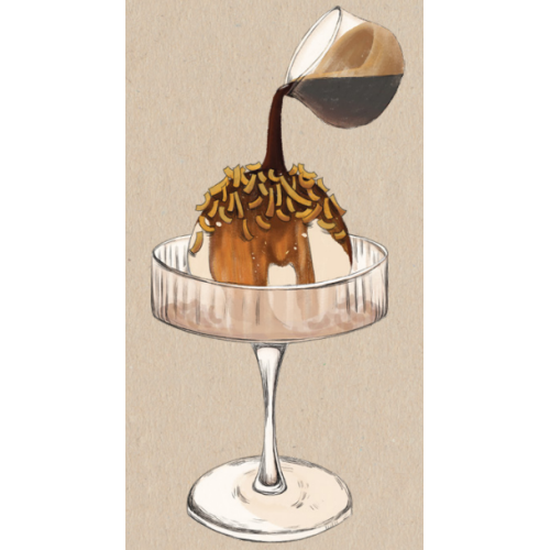 Creamy coconut ice cream topped with toasted coconut flakes and a shot of espresso. It's a hot and cold dessert that's as fierce as a supermodel on a runway.